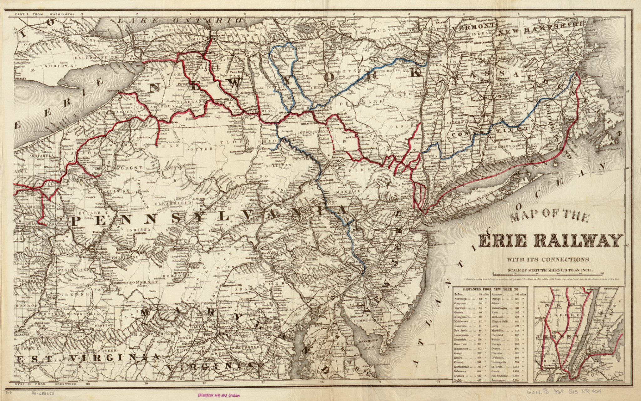 The Erie Railway was the second incarnation of the company commonly known as the Erie Railroad. It was formed in 1861 when the New York and Erie Railroad (which went into receivership in 1859) was reorganized as the Erie Railway Company. In 1863 the Erie Railway expanded by acquiring the Buffalo, New York and Erie Railroad which operated in central New York State.