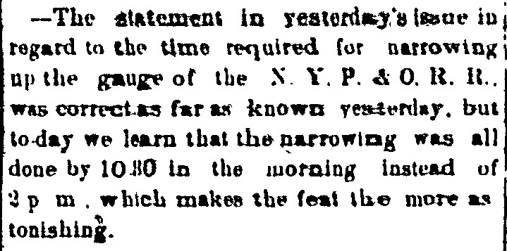 Narrowing of the N. Y. P. & O. R. R.