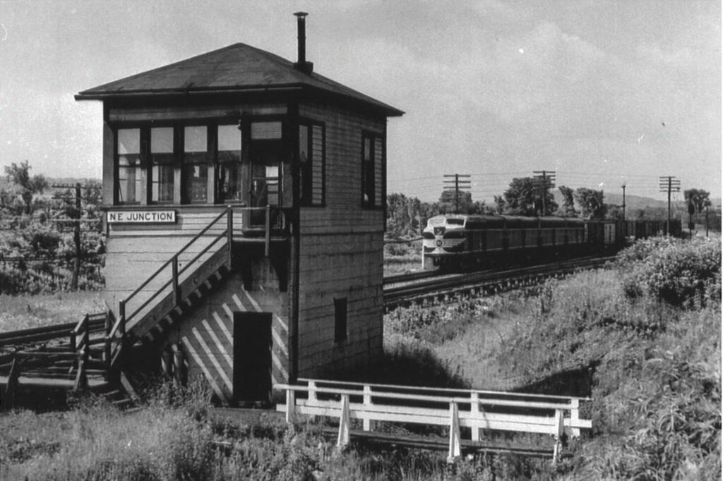 NE Tower at NE Junction that controlled movement on both the C&E and the old main line, sometimes referred to as the Bear Lake line. Because it had lower grades, eastbound freight trains often used the C&E while passenger trains and westbound freight trains used the old main line.