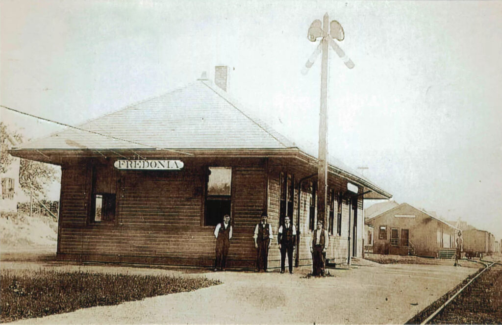 Fredonia, NY is a village in Chautauqua County near Dunkirk. It was a station on the Dunkirk, Allegheny Valley and Pittsburgh (DAV&P) Railroad and was served by two electric railroads, the Dunkirk and Fredonia Railroad and the Buffalo, Dunkirk and Western Railroad.