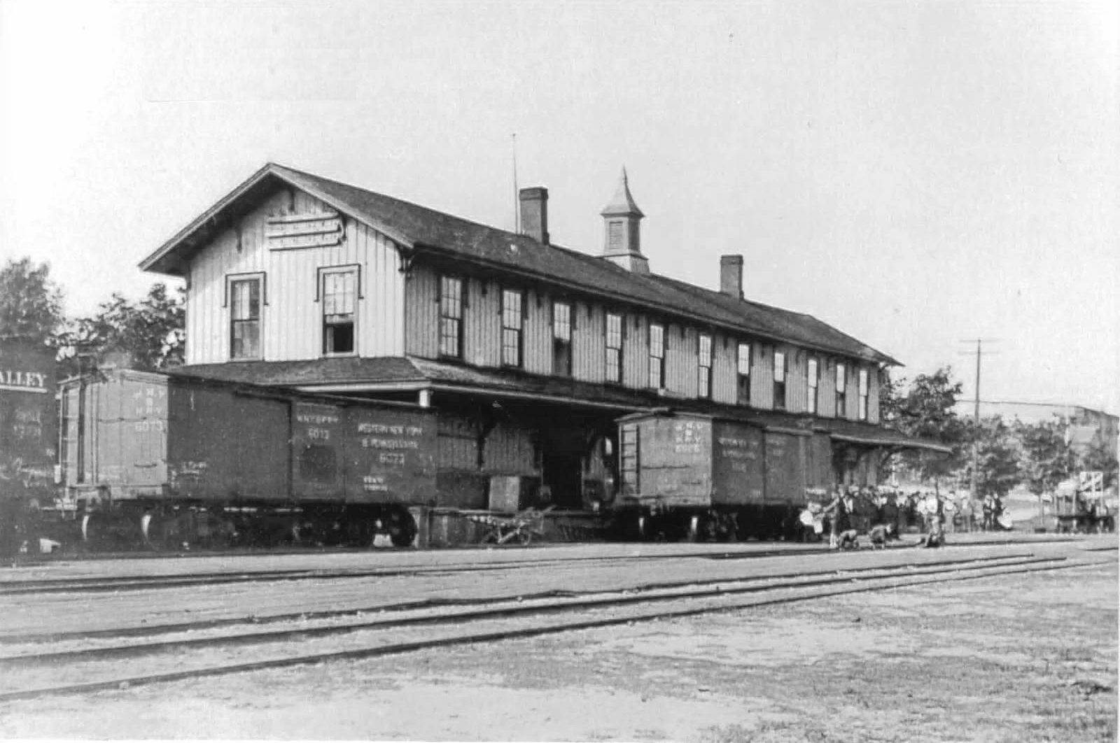 The Buffalo and Oil Creek Cross Cut Rail Road Company built the line from Brocton, NY to Corry, PA through Mayville in 1866. The line was later operated by the Buffalo, Corry and Pittsburgh Rail Road Company (1867 – 1879), the Dunkirk, Chautauqua Lake and Pittsburgh Railroad (1879 – 1879), the Buffalo, Chautauqua Lake and Pittsburgh Railway (1879 – 1879), the Pittsburgh, Titusville and Buffalo Railway (1879 – 1880), the Buffalo, Pittsburgh and Western Railroad Company (1880 – 1883), the Buffalo, New York and Philadelphia Railroad (1883 – 1887), the Western New York and Pennsylvania Railroad (1887 – 1895), the Western New York and Pennsylvania Railway (1895 – 1900), the Pennsylvania Railroad (1900 – 1968), the Penn Central Railroad (1968 – 1967), and Conrail (1976 – 1977). The line was abandoned and scrapped in June 1977.