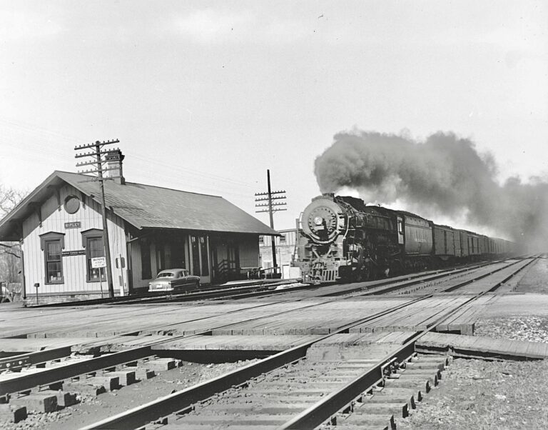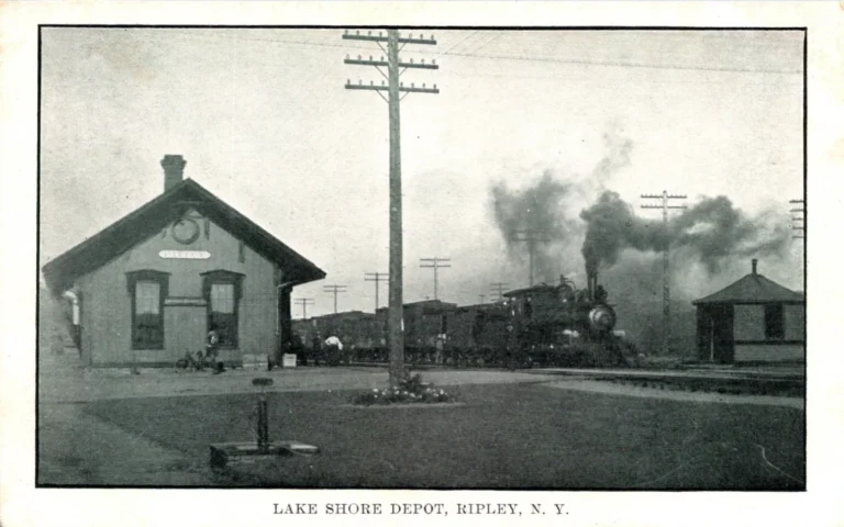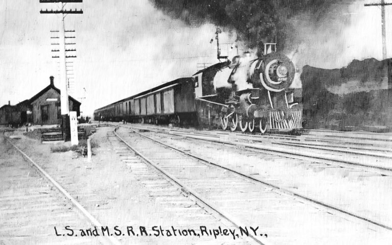 Ripley, NY is a town on the shores of Lake Erie in Chautauqua County. The Lake Shore and Michigan Southern (New York Central) and Nickel Plate Railroad mainlines ran through the town. The village of Ripley was formerly known as “Quincy” and the Lake Shore station in the village was known as “Quicy” on the Buffalo and State Line Railroad. In June 1864 “Quincy” station was renamed as “Ripley” and the station formerly known as “Ripley” was renamed as “Ripley Crossing.”