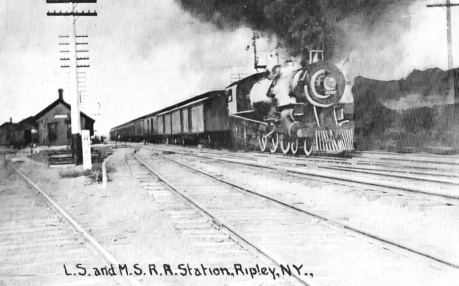 The Buffalo and State Line Railroad completed its line through Ripley in January 1852. The line was later operated by the Buffalo and Erie Railroad (1857 – 1869), Lake Shore and Michigan Southern Railway (1869 – 1877), New York Central and Hudson River Railroad (1877 – 1914), and New York Central Railroad (1914 – 1968).