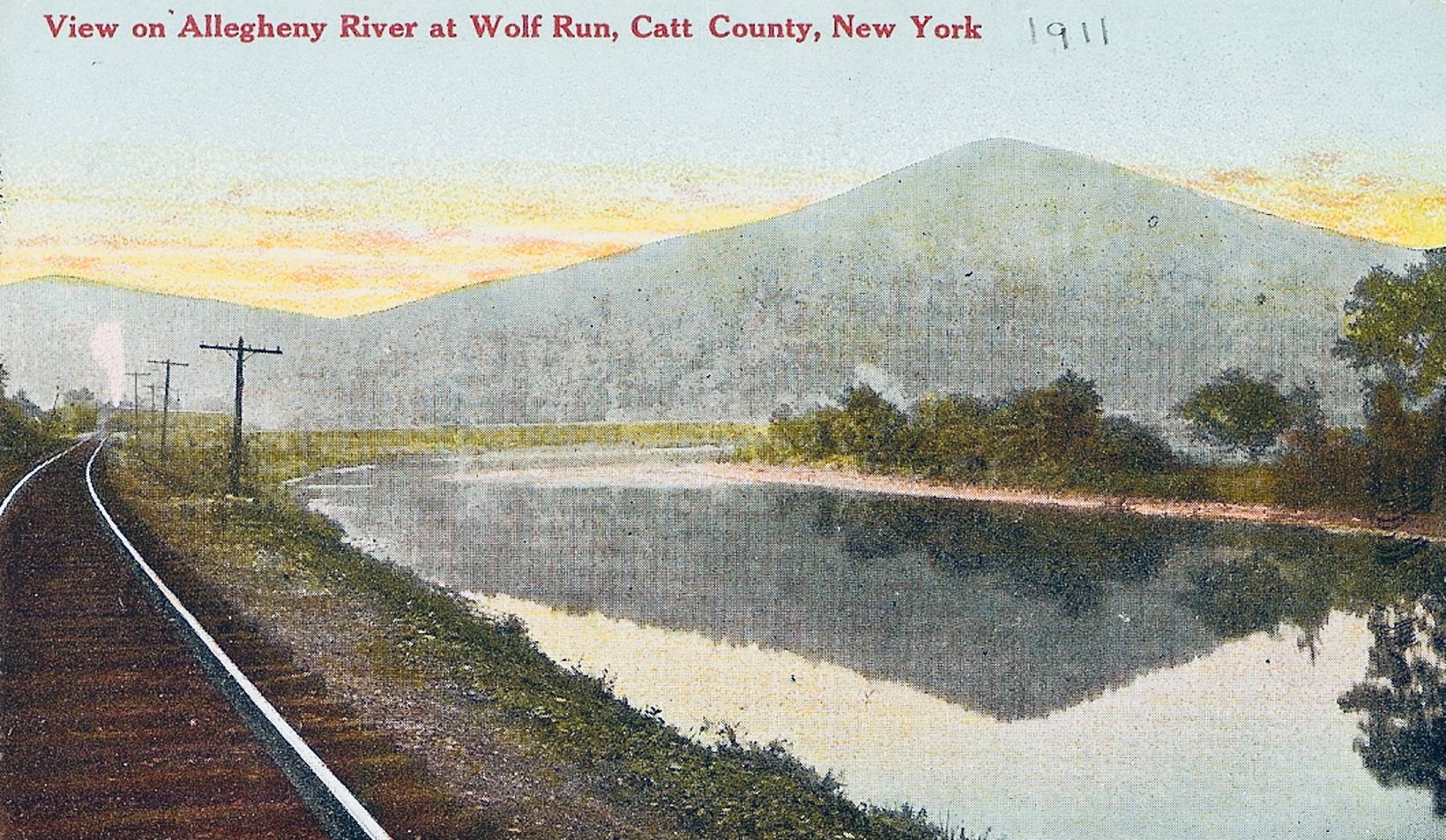 Wolf Run was a station on the railroad line along the south bank of the Allegheny River that started in Olean and passed through Salamanca. Wolf Run, (in the town of Elko, NY) got its name from an incident when the area was first being settled. A Holland Land Company surveyor’s dog ran a wolf into a hollow log.  Upon chopping the log open, they found the mother and 4 or 5 cubs.