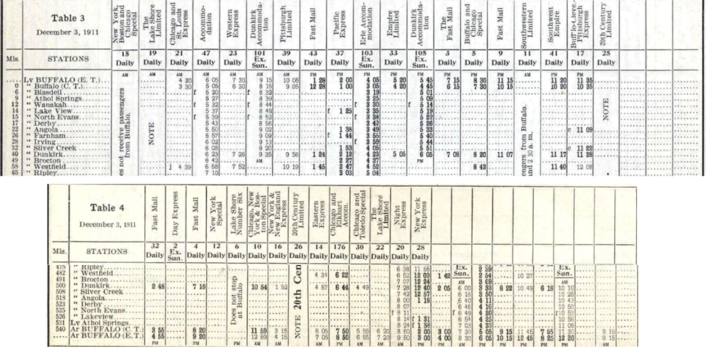 540 536 534 532 531 528 526 525 523 518 514 512 508 505 500 495 491 489 482 487 475 | Buffalo (DL&W Station) West Seneca Blasdell Bay View Athol Springs Wanakah Lake View North Evans Derby Angola Farnham Irving Silver Creek Waites Crossing Dunkirk Van Buren Brocton Portland Westfield Ripley Crossing Ripley |